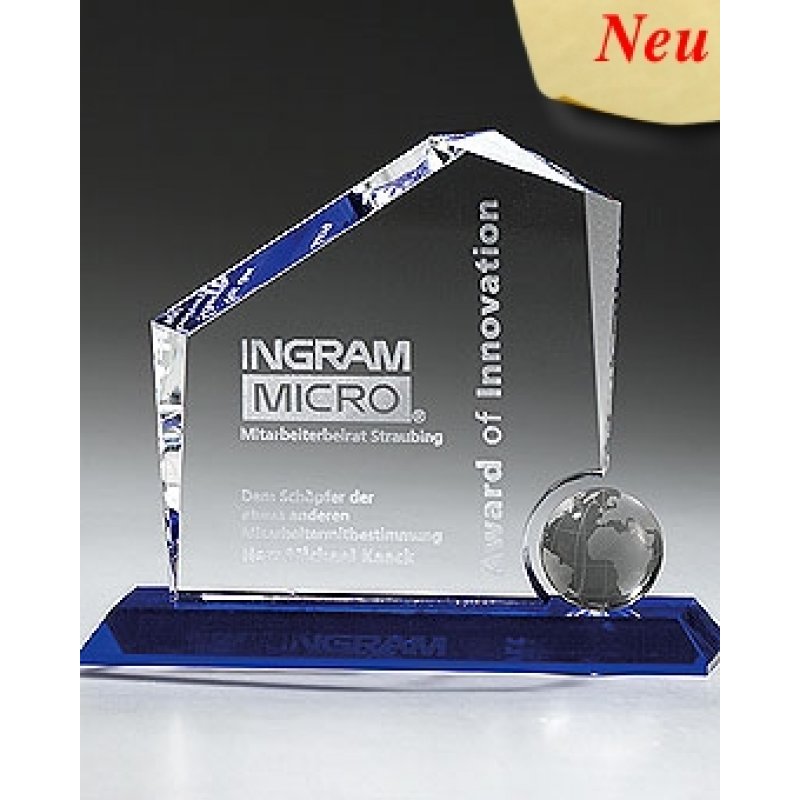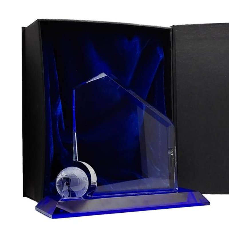 Kristall Globe Regal Peck 150mm Ein internationales Design mit aufwändigem Schliff. Der indigoblaue Sockel spiegelt sich wunderschön im 18 mm starken Kristallglas.