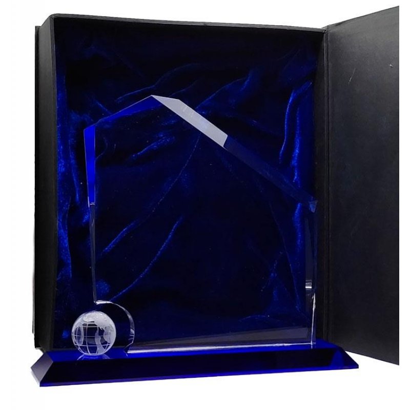 Kristall Globe Regal Peck 250mm Ein internationales Design mit aufwändigem Schliff. Der indigoblaue Sockel spiegelt sich wunderschön im 18 mm starken Kristallglas.