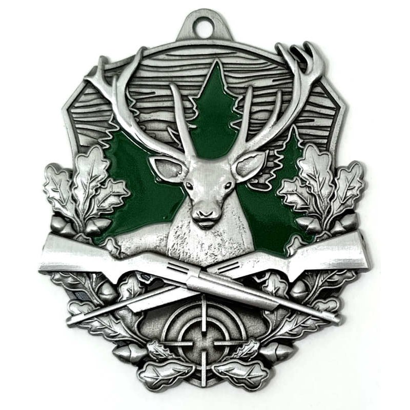 Jagdmedaille Hirsch versilbert Ø80 x75mm mit Öse incl.Gravur auf 50x50mm
