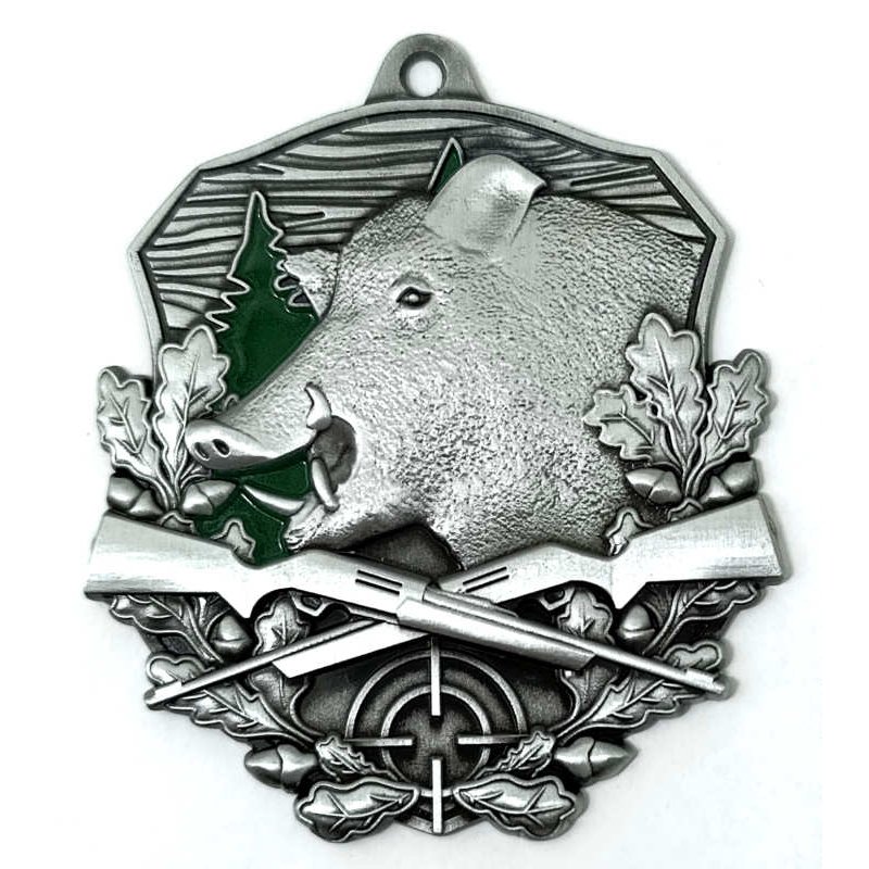 Jagdmedaille Keilerkopf versilbert Ø80 x75mm mit Öse incl.Gravur auf 50x50mm