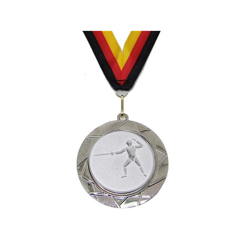 Medaille D=70mm, Fechten inkl. 22mm Band, Silberfarbig