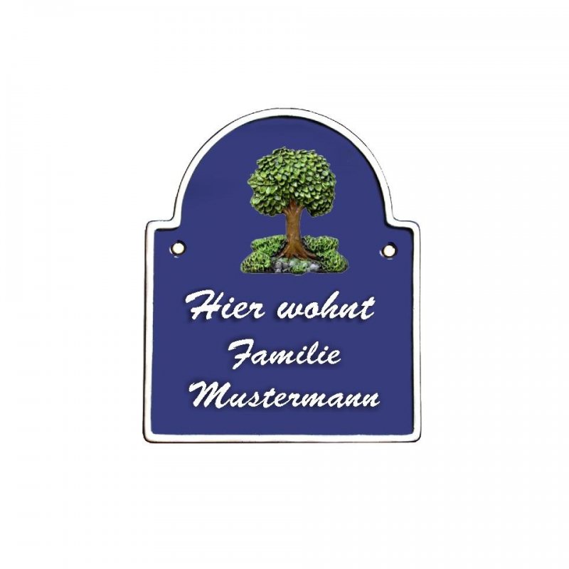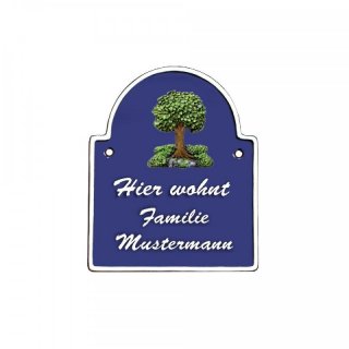 Namensschild Bogen- Klassik Ø140x170mm blau Motiv Baum, Natur, Idylle
