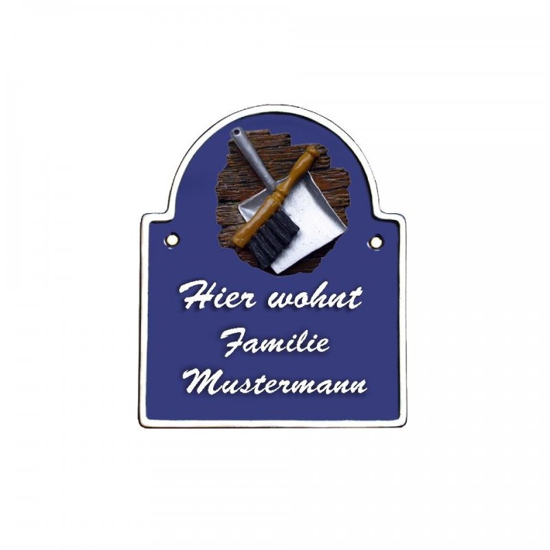 Namensschild Bogen- Klassik Ø140x170mm blau Motiv Reinigung Kehrblech + Handfeger