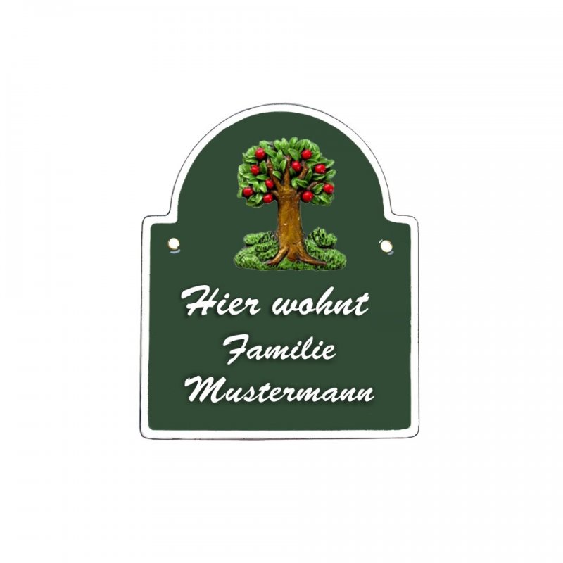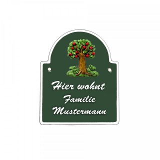 Namensschild Bogen- Klassik Ø140x170mm grün Motiv Baum, Natur, Idylle