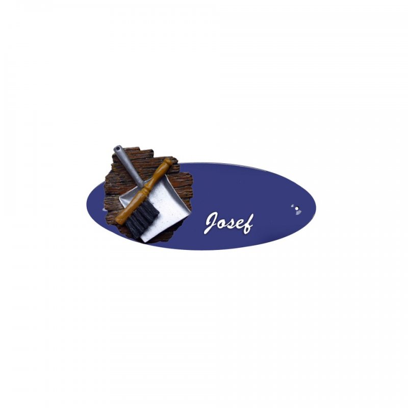 Namensschild Oval- Klassik Ø170x70mm blau Motiv Reinigung Kehrblech + Handfeger