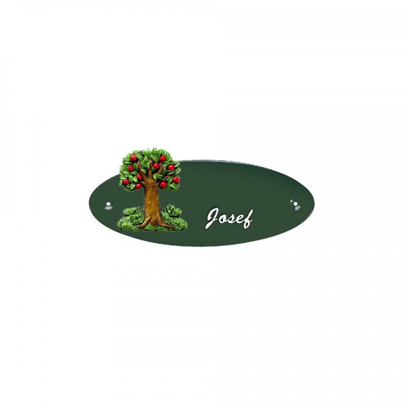 Namensschild Oval- Klassik Ø170x70mm grün Motiv Baum, Natur, Idylle