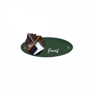 Namensschild Oval- Klassik Ø170x70mm grün Motiv Reinigung Kehrblech + Handfeger