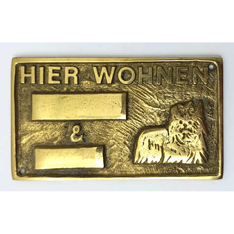 Türschild Messing "Hier wohnen & Yorkshire Terrier" 115 x 70 mm inkl. Gravur